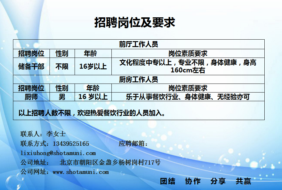 ◆ 内部奖励:最佳进步奖、最佳仪表微笑奖、周年服务奖、伯乐奖、福利餐券、节日礼品、年终奖励。