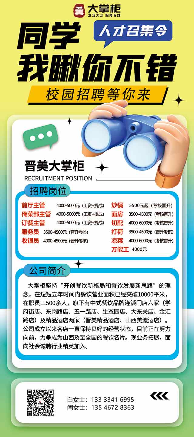 企业招聘信息:晋美大掌柜