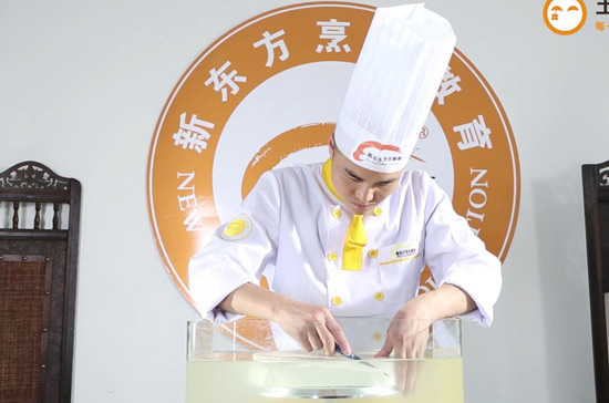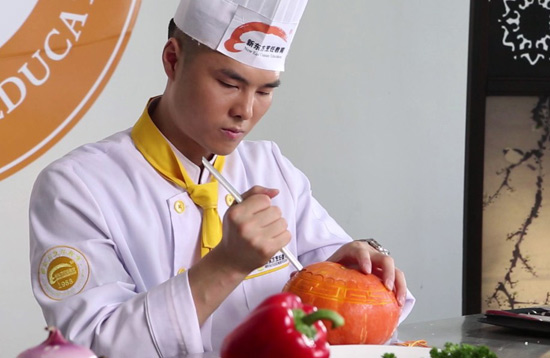食品雕刻主要是考验厨师对食材质地的掌握,与眼手的搭配,而其中的盲雕更是在精湛的雕刻技艺下完成的,盲雕是指在食品雕刻的过程中蒙上双眼,通过对食材的触摸来进行雕刻。在常人看来,对日常生活中的食材进行雕刻已经是一项绝活,而蒙眼雕刻简直就是绝活中的绝活。在新东方烹饪学校就有着这样一位传奇雕刻大师,他叫周后超。
