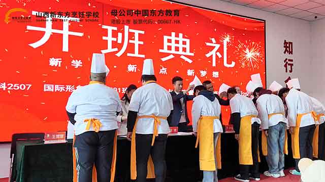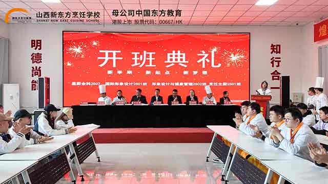 山西新东方职校迎来了25级秋季班的新同学们。今天,我们齐聚一堂,隆重举行开班典礼,共同见证中餐专业、形象设计专业的新生们,正式开启人生的崭新篇章。这里将是你们习得一技之长的沃土,是你们追逐职业梦想的起点,更是你们绽放青春光彩的舞台。