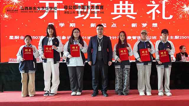 开班典礼在热烈的掌声中落下帷幕,但25级新生的职校之旅才刚刚启程。愿中餐专业的同学们,能在烟火气中淬炼厨艺,让每一道菜品都承载匠心;愿形象设计专业的同学们,能在光影里雕琢美感,让每一次造型都传递创意。愿所有新生都能快速适应职校生活,在山西新东方职校这片沃土上,不负时光、不负自己,习得一技之长,奔赴繁花似锦的未来!